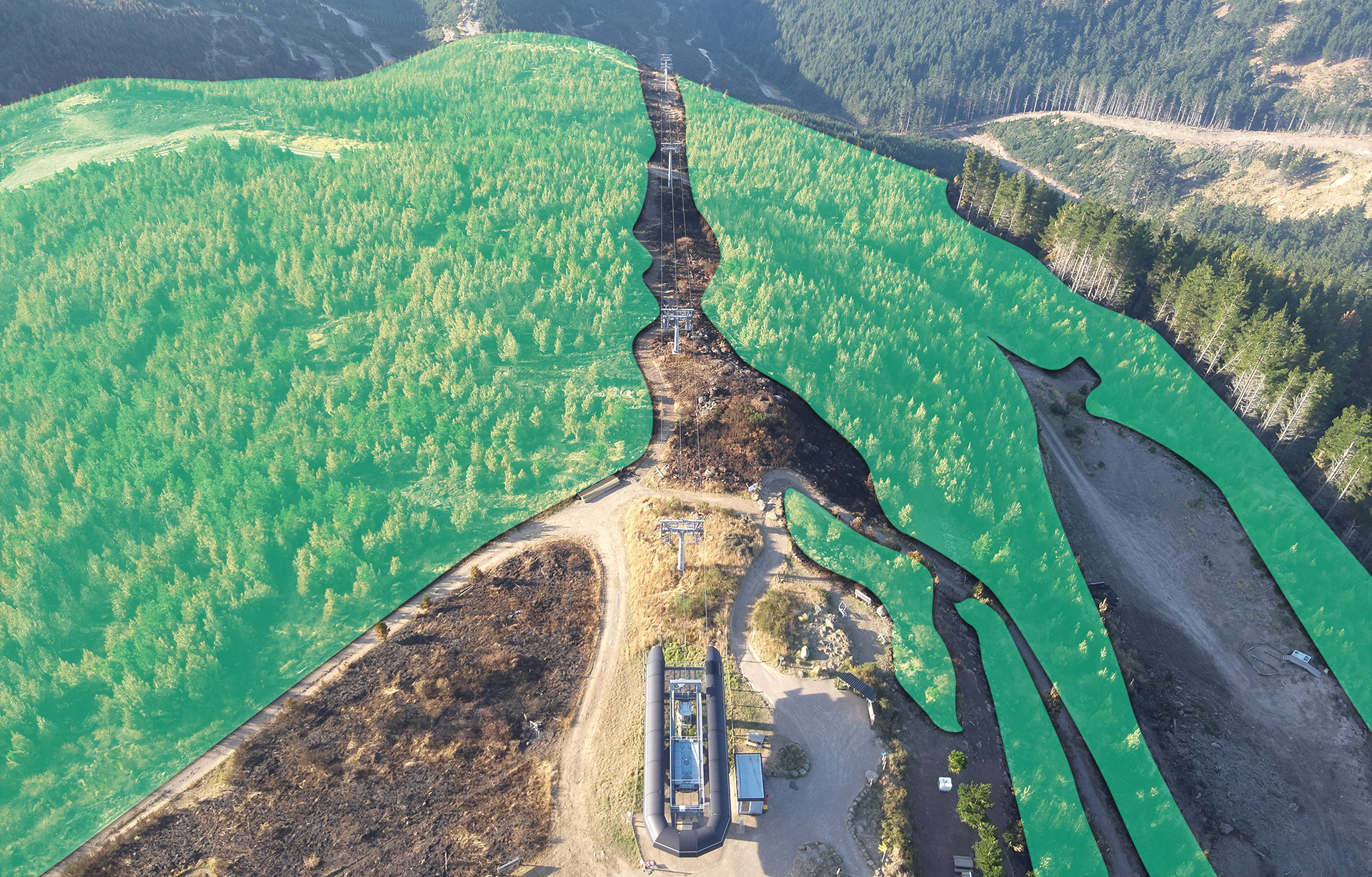 Location: 65ha of 7 year old pine that was significantly burnt during the 2024 Port Hills Fire on the western side of the property around Throw the Goat, Yoda, The Green, Bako Run and the Uphill.