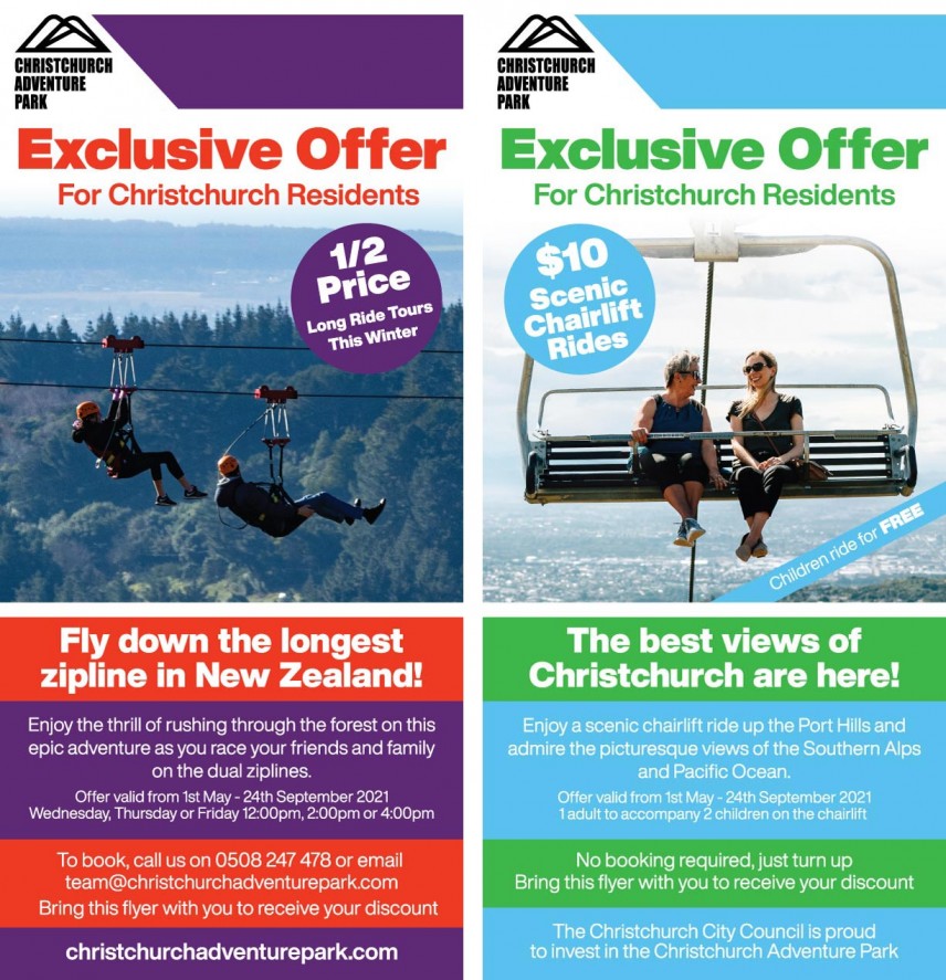 The following deals are available exclusively to Christchurch ratepayers until 30 September 2020: